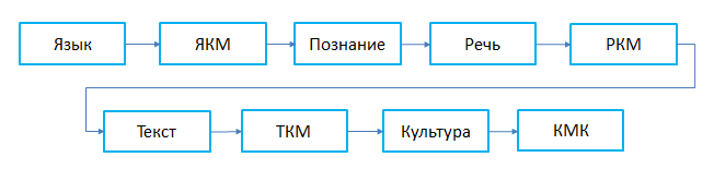 В сознании носителя языка формируется устойчивая, но постоянно развивающаяся когнитивная модель мира, которая в процессе познания обогащается новыми эмпирическими данными и «речевой» картиной мира. Под влиянием текстового и культурнотекстового мышления формируется текст, отражающий текстовую картину мира, которая, в свою очередь, обогащаясь семантическими и концептуальными компонентами окружающего мира и культуры, укореняется в общей картине мира культуры. Языковая и культурная картины мира взаимосвязаны через пересечения, включения и, реже, тождества. Глобальная природа этих типов картин очевидна.
